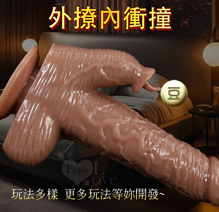 | JIUAI 擎天 ‧ 7X7頻伸縮蠕動+舌撩酥震 內外刺激仿真吸盤陽具﹝USB直插供電款﹞