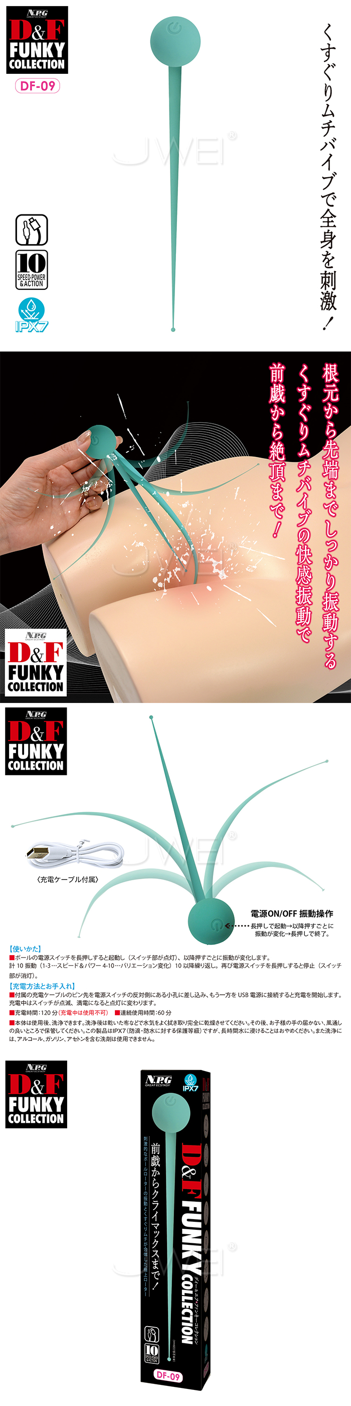 日本原裝進口NPG.D&F FUNKY COLLECTION 10頻強震尖頭刺激 全身可用挑逗器【DF-09】