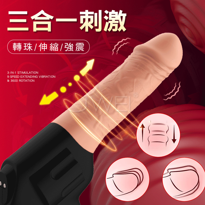 仿真手槍.9種頻率 伸縮+轉珠+震動 三合一逼真陽具按摩棒